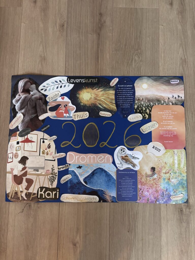 De Kerstboom in onze tuin is weer een prachtige, gewone spar, zonder haar lampjes, Kerstballen en piek. De seizoenstafel is van Advent naar Winter gegaan. En we zijn rustig geland in het nieuwe jaar. Tijdens Advent hebben de meiden en ik collages gemaakt, om inzicht te krijgen in onze wensen, intenties en voornemens voor 2026. We hebben ze ook uitgeschreven. En langzaamaan beginnen die vorm of een plek te krijgen in onze dagelijkse bezigheden, routines en gewoonten. In deze blog neem ik je mee in ons nieuwe jaar: wat we willen gaan doen, wat we hebben geboekt, wat onze doelen zijn. En hoe ik zowel mezelf als de kinderen help om dat op een fijne, milieubewuste, leuke en leerzame manier vorm te geven! Een vervolg op mijn Advent-blog: het resultaat van vertragen en reflecteren in december. Hopelijk vind je veel inspiratie als het gaat om kunst, muziek & lezen, duurzame uitjes en vakanties, milieubewust leven en wonen, sporten, yoga & gezondheid en natuurlijk, groen ouderschap.